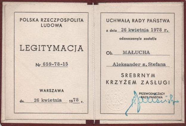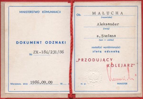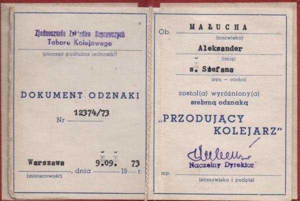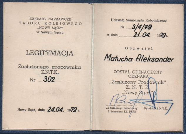 Za to został odznaczony Odznaką „Zasłużony Pracownik ZNTK Nowy Sącz” oraz Srebrną i Złotą Odznaką „Przodujący Kolejarz”.